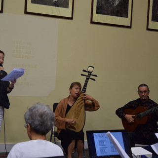 本次讲座嘉宾有大华商报马在新社长;前任加拿大华裔作家协会会长梁丽芳教授;北美国际文化发展基金会会长张平女士;加中友好合作协会会长韩燕女士;加拿大中华传统文化基金会主席Winnie Chen;东方国际翻译公证中心总经理Angela Xiao,作家李爱英;作家Nola,著名译者吉羽等。特邀嘉宾丝绸之路音乐团团长,温哥华交响乐团中国音乐学校琵琶教师何秋霞,及加拿大世界音乐的著名代表人安聚理(Andre Thibault), 共同为大家演奏了美妙的琵琶吉他合奏曲。